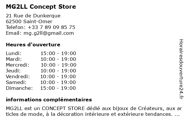 | Mercredi | 10:00-19:00 |