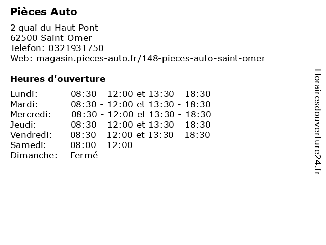 | Mercredi | 08:30-12:00 et 13:30-18:30 |