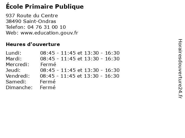 | Mardi | 08:45-11:45 et 13:30-16:30 |
