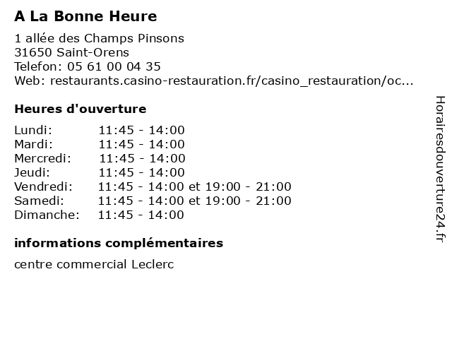 | Samedi | 11:45-14:00 et 19:00-21:00 |