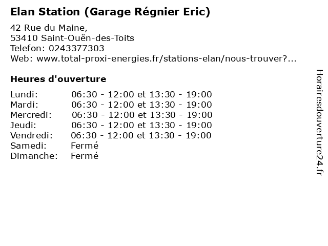 | Samedi | Fermé |