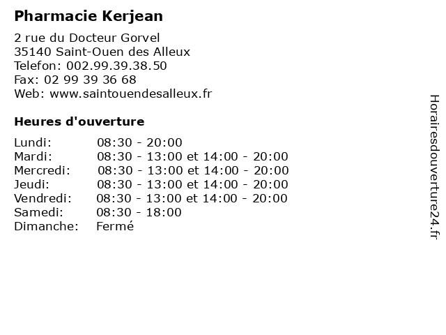 | Vendredi | 08:30-13:00 et 14:00-20:00 |