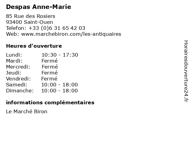 1 De Gato Anne (Distance: 0,00 km) 85 Rue des Rosiers, 93400 Saint-Ouen anne, architecture, art forain, bijoux, céramiques, de, gato, mobilier, peintures & arts graphiques 2 Bossennec Anne - Arts du XXème (Distance: 0,00 km) 85 Rue des Rosiers, 93400 Saint-Ouen anne, antiquaire, arts, bossennec, du, mobilier., xxème 3 Anne de Solène (Distance: 2,62 km) 8/9 Quai du Chatelier, 93450 L'Ile Saint Denis anne, beaute, chaussures, de, lingerie, mode enfants, mode femmes, mode hommes, solène, sport 4 Anne de Solene (Distance: 2,82 km) 111 Rue Lafayette, 75010 Paris accessoires, anne, de, linge de bain, linge de lit, linge de table, solene 5 Anne de Solene (Distance: 3,35 km) 64 Bd. Haussmann, 75009 Paris accessoires, anne, de, linge de bain, linge de lit, linge de table, solene 6 Anne de Solene (Distance: 3,36 km) 35 Bd. Haussmann, 75009 Paris accessoires, anne, de, linge de bain, linge de lit, linge de table, solene |