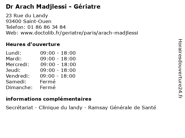 1 Dr Vania Leclercq - Gériatre (Distance: 1,01 km) 62 Avenue Gabriel Péri, 93400 Saint-Ouen consultation, docteur, dr, gériatre, leclercq, med, médecin, traitement, vania 2 Dr Georges Sebbane - Gériatre (Distance: 6,50 km) 125 rue de Stalingrad, 93000 Bobigny consultation, docteur, dr, georges, gériatre, med, médecin, médecine, sebbane, traitement 3 Dr Frédéric Pamoukdjian - Gériatre (Distance: 6,50 km) 125 rue de Stalingrad, 93000 Bobigny consultation, docteur, dr, frederic, frédéric, gériatre, med, médecin, médecine, pamoukdjian, traitement 4 Medecin Odile Champart Curie (Gériatre) (Distance: 7,19 km) 28 Barbet de Jouy, 75007 Paris champart, curie, docteur, gériatre, medecin, odile, sante, services 5 Medecin Odile Champart Curie - Consultation a domicile (Gériatre) (Distance: 7,19 km) 28 Barbet de Jouy, 75007 Paris champart, consultation, curie, docteur, domicile, gériatre, medecin, odile, sante, services 6 Medecin Abdelaziz Chebbah (Gériatre) (Distance: 7,80 km) 3 Boulevard de Lattre de Tassigny, 95200 Sarcelles abdelaziz, chebbah, docteur, gériatre, medecin, sante, services |