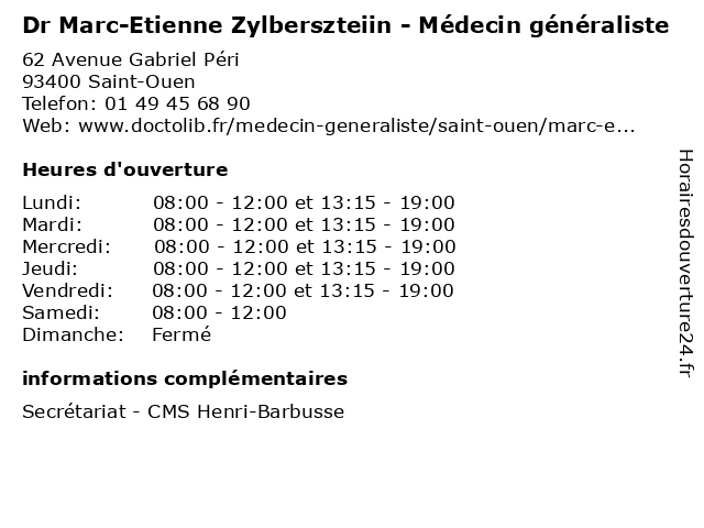 | Lundi | 08:00-12:00 et 13:15-19:00 |