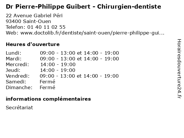 | Lundi | 09:00-13:00 et 14:00-19:00 |