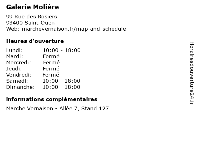 1 Galerie Molière (Distance: 0,00 km) 99 Rue des Rosiers, 93400 Saint-Ouen architecture, art forain, bijoux, céramiques, galerie, mobilier, molière, peintures & arts graphiques 2 Galerie Molière (Distance: 0,00 km) 99 Rue des Rosiers, 93400 Saint-Ouen architecture, art forain, bijoux, céramiques, galerie, mobilier, molière, peintures & arts graphiques 4 École maternelle publique Molière (Distance: 6,58 km) 58 Rue Jean-Pierre Timbaud, 92400 Courbevoie cours, education, maternelle, molière, publique, services, École, école 5 Hotel Résidence Molière (Distance: 10,30 km) 28 Rue Molière, 92120 Montrouge bar, hotel, molière, restaurant, résidence, service 6 Pharmacie Molière (Distance: 10,31 km) 20 Rue Moliere, 92120 Montrouge herboristerie, molière, médicaments, paramédical, parapharmacie, pharmacie, pharmacien, santé, traitements |