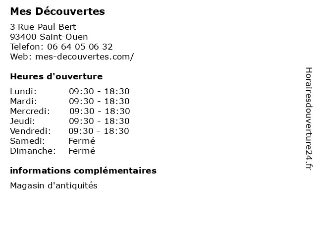 1 Les Découvertes d'Autrefois (Distance: 0,22 km) 99 Rue des Rosiers, 93400 Saint-Ouen architecture, art forain, bijoux, céramiques, d'autrefois, découvertes, les, mobilier, peintures & arts graphiques 2 Mes Lunettes et Moi (Distance: 2,69 km) 29 Rue des Martyrs, 75009 Paris et, lunettes, mes, moi, monture, opticien, optique, solaire, vue 3 Crèche Mes'Anges (Distance: 3,18 km) 31 Rue la Fayette, 75009 Paris crèche, crèches, mes'anges, services, services à la personne 5 Mes Demoiselles Paris (Distance: 4,17 km) 46, rue Etienne Marcel, 75002 Paris accessoires, demoiselles, femme, mes, mode, paris 6 Mes Demoiselles Paris (Distance: 4,71 km) 45 rue Charlot, 75003 Paris accessoires, demoiselles, femme, mes, mode, paris |