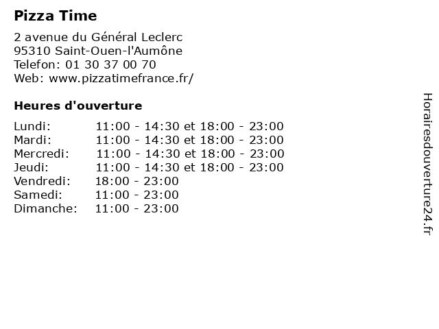 | Lundi | 11:00-14:30 et 18:00-23:00 |