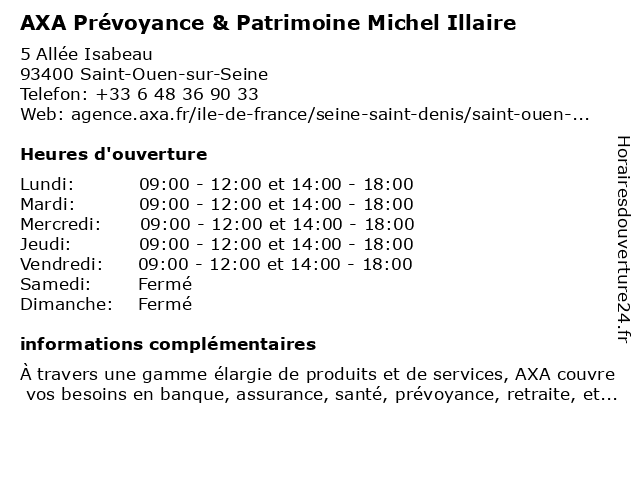 | Lundi | 09:00-12:00 et 14:00-18:00 |