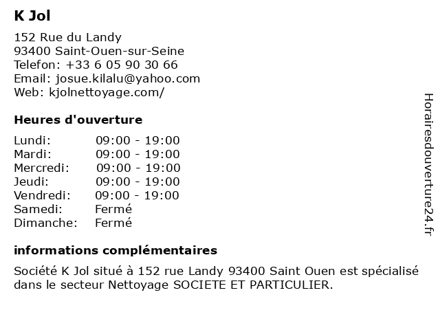 Société K Jol situé à 152 rue Landy 93400 Saint Ouen est spécialisé dans le secteur Nettoyage SOCIETE ET PARTICULIER.