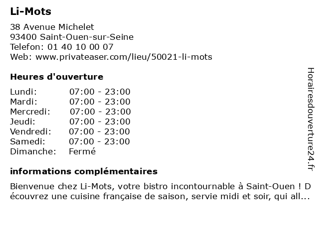 Termes de recherche pour Li-Mots:restaurant français, li, mots |