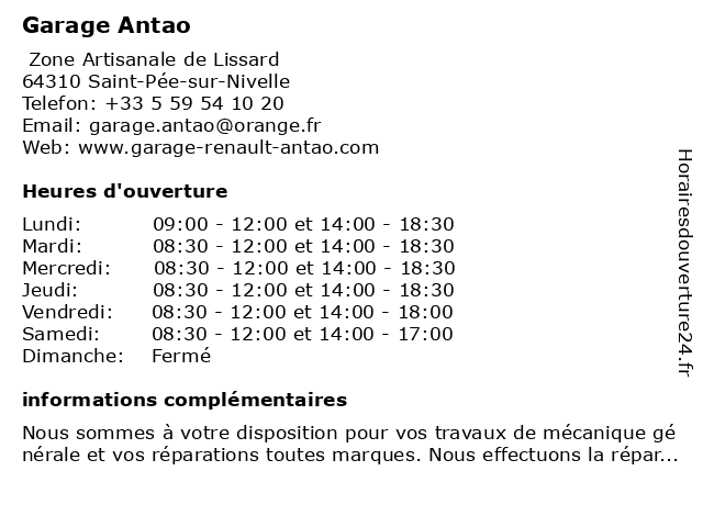 | Lundi | 09:00-12:00 et 14:00-18:30 |