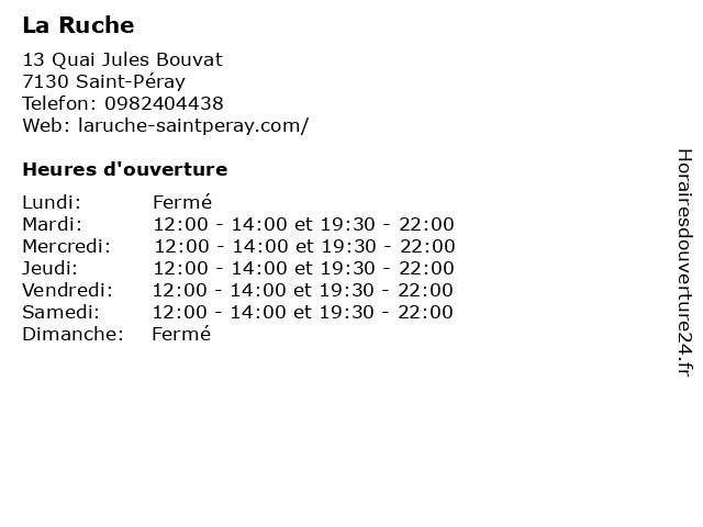 | Samedi | 12:00-14:00 et 19:30-22:00 |