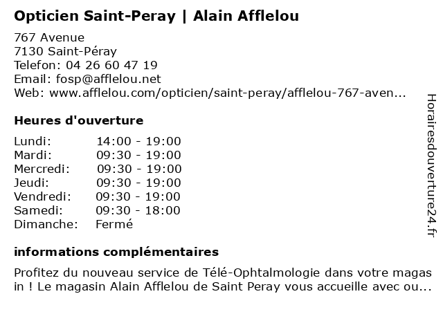 1 Audioprothésiste Saint Peray Alain Afflelou Acousticien (Distance: 0,01 km) 767 Avenue Gross Umstadt, 07130 Saint-Péray acousticien, afflelou, alain, audioprothésiste, peray, saint 2 Audioprothésiste Saint-Peray-Alain Afflelou Acousticien (Distance: 0,01 km) 767 Avenue, 07130 Saint-Peray acousticien, afflelou, alain, audiologie, audioprothésiste, clinique médicale, peray, saint 3 CarGo Location de véhicules SAINT PERAY (Distance: 0,19 km) 11 Allée du Mistral, 07130 Saint-Péray cargo, de, location, peray, saint, véhicules 4 Crussol Auto Contrôle Saint Peray (Distance: 0,25 km) Rue le Grand Mail, 07130 Saint-Péray auto, contrôle, crussol, peray, saint 5 Cap Animal Saint Peray (Distance: 0,28 km) Rue Pôle 2000, 07130 Saint-Péray animal, cap, peray, saint 6 Du Pain sur la Planche Saint-Peray (Distance: 0,61 km) 100 Avenue Gross Umstadt, 07130 Saint-Péray du, la, pain, peray, planche, saint, sur |