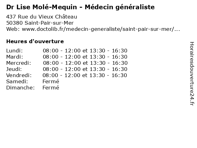 | Mercredi | 08:00-12:00 et 13:30-16:30 |