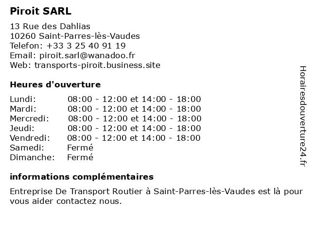 | Mercredi | 08:00-12:00 et 14:00-18:00 |