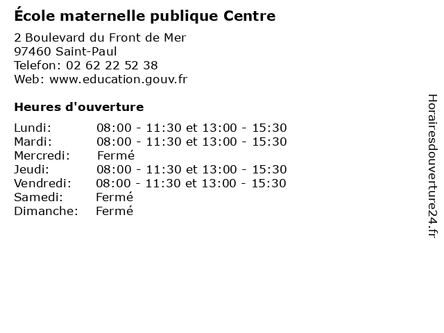 Lundi | 08:00-11:30 et 13:00-15:30 |