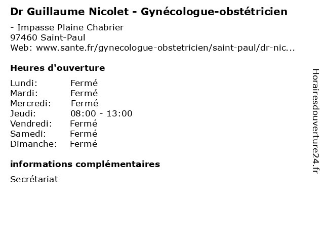 | Samedi | Fermé |