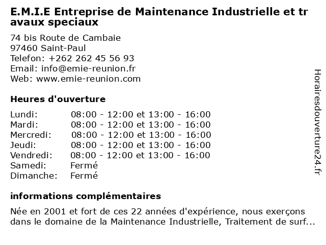 Termes de recherche pour E.M.I.E Entreprise de Maintenance Industrielle et travaux speciaux:et, de, entreprise, industrielle, maintenance, travaux, speciaux, e.m.i.e |
