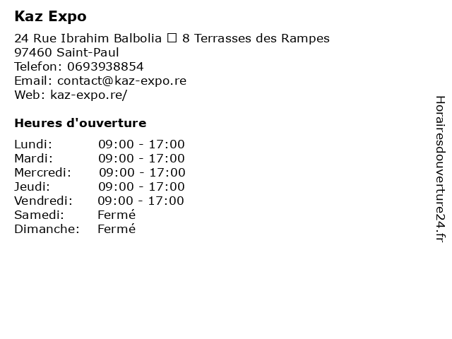 1 Kaz Expo (Distance: 0,00 km) 24 Rue Ibrahim Balbolia – 8 Terrasses des Rampes, 97460 Saint-Paul 974, constructeur, construction, construire, expo, kaz, maison, réunion 2 Kaz'Ado Ouest - Maison des Adolescents (Distance: 0,42 km) 31 bis Rue Labourdonnais, 97460 Saint-Paul adolescents, des, kaz'ado, maison, ouest 3 La KAZ Lucian (Distance: 7,65 km) 21 rue Louis Desjardins, 97411 Saint-Paul burger, fastfood, kaz, la, lucian, restauration, sandwicherie, snack 4 La Kaz à Crêpes (Distance: 9,78 km) . route du Trou d'Eau, 97434 La Saline crêperie, crêpes, kaz, la, restaurant, restauration 6 Green Acres - Immo Plus Réunion (Distance: 24,75 km) - rue Charles Gounot, 97400 Saint Denis acres, agency, agent, apartment, green, home, immo, plus, real estate, réunion |