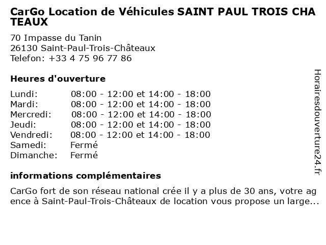 Termes de recherche pour CarGo Location de Véhicules SAINT PAUL TROIS CHATEAUX:de, saint, chateaux, paul, trois, véhicules, location, cargo |