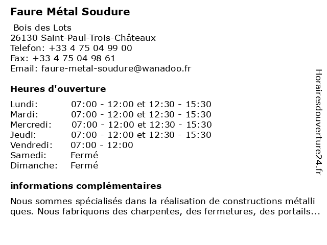| Lundi | 07:00-12:00 et 12:30-15:30 |