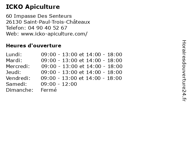 | Jeudi | 09:00-13:00 et 14:00-18:00 |