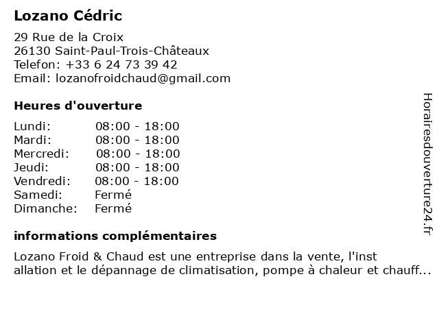 | Samedi | Fermé |
