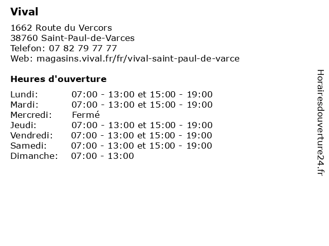 1 Vival (Distance: 8,79 km) 791 Avenue Léopold Fabre, 38250 Lans-en-Vercors alimentation, distributeur alimentaire, supermarché, supérette, vival, épicerie 2 Vival (Distance: 11,04 km) n/a Les Hauts du Moulin, 38320 Brié-et-Angonnes bread, deli, fish shop, gas bottles, photocopy, removing packages, vival, wine cellar 3 Vival (Distance: 13,14 km) 5 Place Condorcet, 38000 Grenoble bread, deli, fish shop, gas bottles, photocopy, removing packages, vival, wine cellar 4 Vival (Distance: 13,45 km) 141 Cours Berriat, 38000 Grenoble alimentation, distributeur alimentaire, supermarché, supérette, vival, épicerie 5 Vival (Distance: 13,45 km) 35-37 Rue du Vercors, 38000 Grenoble alimentation, distributeur alimentaire, supermarché, supérette, vival, épicerie 6 Vival (Distance: 13,70 km) 1 Rue Leon Jouhaux, 38100 Grenoble droguerie, d’hypermarchés, frais, fruits et légumes, hygiène, parfumerie et autres produits non alimentaires., surgelés, vival, épicerie |