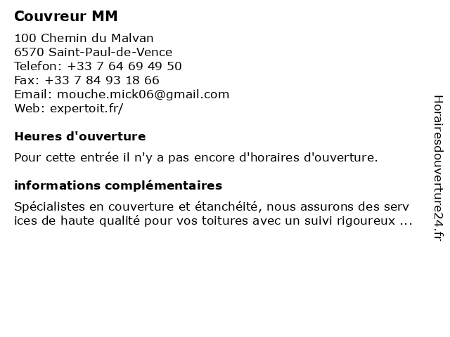 1 Couvreur Saint-Paul de Vence , couvreur 06 ,couvreur, charpentier et zingueur, Désamiantage toiture (Distance: 0,07 km) 168 Chemin du Malvan, 06570 Saint-Paul-de-Vence 06, charpentier, couvreur, de, désamiantage, et, paul, saint, toiture, vence, zingueur 2 Artisan Gresset Couvreur (Distance: 3,03 km) 153 Chemin du Vallon des Vaux, 06800 Cagnes-sur-Mer artisan, couvreur, gresset 3 Horn Artisan Couvreur (Distance: 6,53 km) 144 Chemin de la Romaine, 06410 Biot artisan, couvreur, horn 5 Couvreur Mougins - Compagnons Azuréens (Distance: 11,65 km) Chemin de Font de Currault, 06250 Mougins azuréens, compagnons, couvreur, mougins 6 Artisan Gresset Couvreur (Distance: 12,52 km) 36 Route de Nice, 06740 Châteauneuf-Grasse artisan, couvreur, gresset |