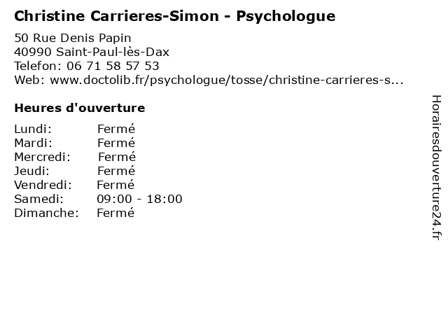 Termes de recherche pour Christine Carrieres-Simon - Psychologue:carrieres, christine, santé, simon, soins, psychologue, psychiatre, psy |