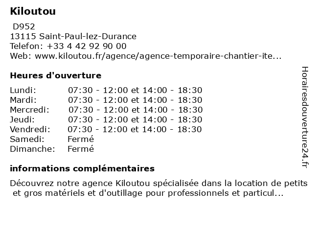 Lundi | 07:30-12:00 et 14:00-18:30 |