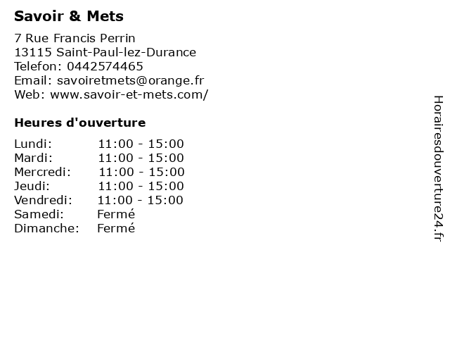 | Samedi | Fermé |