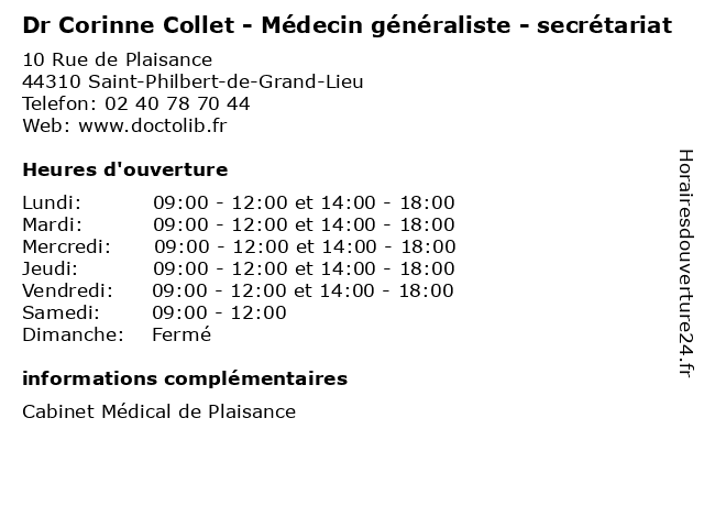 | Lundi | 09:00-12:00 et 14:00-18:00 |