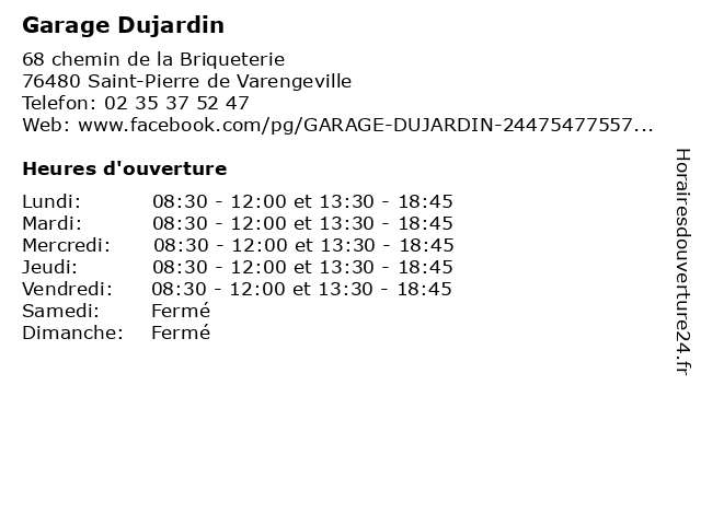 | Lundi | 08:30-12:00 et 13:30-18:45 |