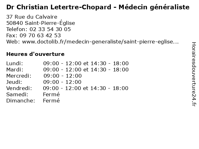 Termes de recherche pour Dr Christian Letertre-Chopard - Médecin généraliste:christian, soins, chopard, généraliste, docteur, médecin, dr, letertre |