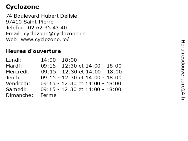 | Mercredi | 09:15-12:30 et 14:00-18:00 |