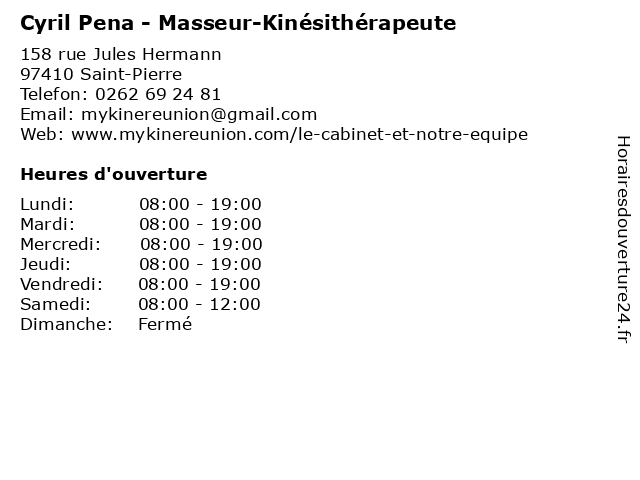 1 Dr Cyril Charlin - Neurologue (Distance: 2,31 km) - Avenue François Mitterrand, 97448 Saint-Pierre cerveau, charlin, chu, cilaos, cyril, de, dr, joseph, la, le, louis, nerf, neurologie, neurologue, pierre, réunion, saint, sites, st, sud 2 Francis Grondin - Masseur-Kinésithérapeute (Distance: 0,00 km) 158 rue Jules Hermann, 97410 Saint-Pierre consultation, docteur, francis, grondin, kinésithérapeute, masseur, med, médecin, traitement 3 Thibaud Albouy - Masseur-Kinésithérapeute (Distance: 0,00 km) 158 rue Jules Hermann, 97410 Saint-Pierre albouy, consultation, docteur, kinésithérapeute, masseur, med, médecin, thibaud, traitement 4 Cédric Turpin - Masseur-Kinésithérapeute (Distance: 0,00 km) 158 rue Jules Hermann, 97410 Saint-Pierre consultation, cédric, docteur, kinésithérapeute, masseur, med, médecin, traitement, turpin 5 Mélissa Tartenson - Masseur-Kinésithérapeute (Distance: 0,00 km) 158 rue Jules Hermann, 97410 Saint-Pierre consultation, docteur, kinésithérapeute, masseur, med, médecin, mélissa, tartenson, traitement 6 Alexis Schumacher - Masseur-Kinésithérapeute (Distance: 0,00 km) 158 rue Jules Hermann, 97410 Saint-Pierre alexis, consultation, docteur, kinésithérapeute, masseur, med, médecin, schumacher, traitement |