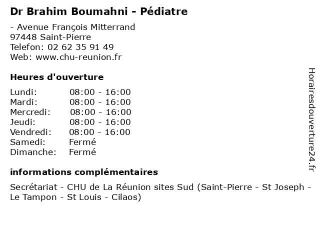 Termes de recherche pour Dr Brahim Boumahni - Pédiatre:la, le, de, st, saint, pierre, reunion, louis, joseph, chu, cilaos, sites, dr, pédiatre, brahim, intensifs, neonatologie, réanimation, néonatales, boumahni |