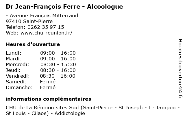 Termes de recherche pour Dr Jean-François Ferre - Alcoologue:jean, francois, med, medecine, traitement, docteur, médecin, ferré, consultation, dr, alcoologue |