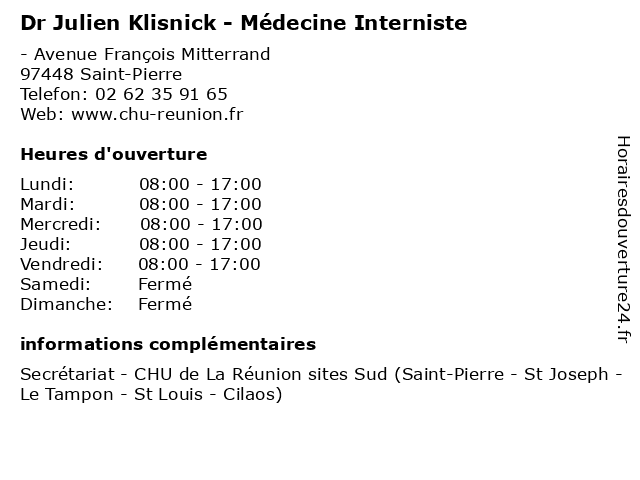 Termes de recherche pour Dr Julien Klisnick - Médecine Interniste:la, le, de, st, saint, pierre, julien, reunion, louis, medecine, joseph, chu, cilaos, sites, dr, infection, infections, smit, interniste, klisnick |
