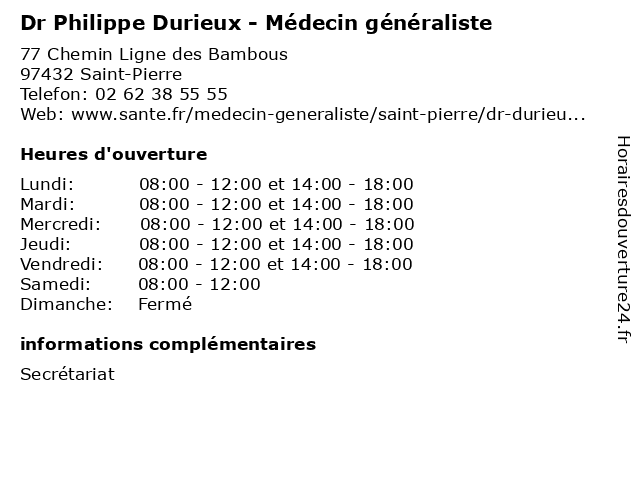 | Lundi | 08:00-12:00 et 14:00-18:00 |