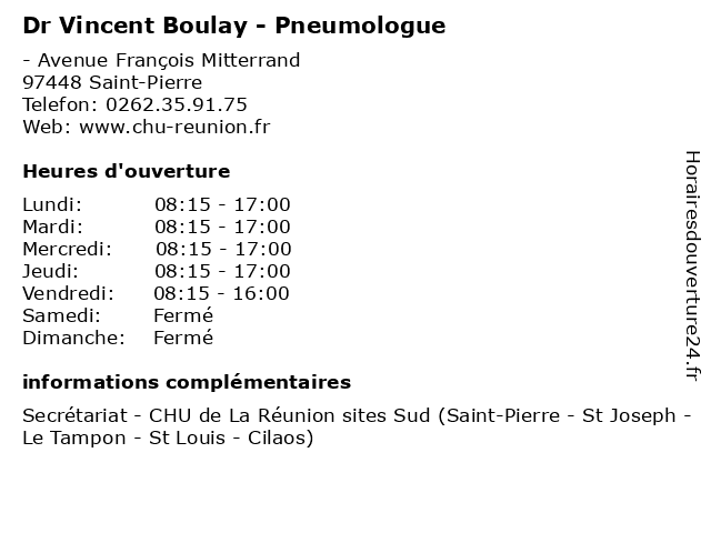 Termes de recherche pour Dr Vincent Boulay - Pneumologue:la, le, de, st, boulay, saint, pierre, vincent, reunion, louis, sud, joseph, chu, allergologie, pneumologie, cilaos, sites, dr, pneumologue, allergie |