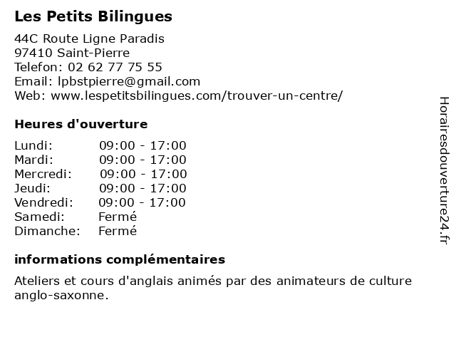 | Lundi | 09:00-17:00 |