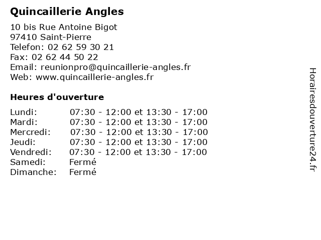 1 Quincaillerie Angles (Distance: 3,04 km) 10 bis rue Raphaël Bigot, 97410 Saint-pierre angles, quincaillerie 2 Castor - Quincaillerie et Bricolage (Distance: 9,21 km) 149 rue des Poinsétias, 97430 Le Tampon brico, bricolage, castor, cuisine, et, outillage, quincaillerie, vente 3 Quincaillerie Dromart (Distance: 11,38 km) 16 Avenue de toulouse, 97450 Saint louis dromart, quincaillerie, saint louis 4 Bailly Quaireau Quincaillerie (Distance: 14,54 km) 5 Avenue de la boulangerie, 97427 L'Etang Salé les Hauts bailly, fontenay le comte, quaireau, quincaillerie 5 Ravate Electro (Distance: 3,60 km) - Rue des Bons Enfants, 97410 Saint-Pierre bricolage, bâtiment, electro, maison, quincaillerie, ravate, équipement 6 Weldom (Distance: 4,17 km) - Rue Luc Lorion, 97410 Saint-Pierre bati, batiment, bois, brico, bricolage, chauffage, droguerie, déco, décoration, electricité, jardin, luminaire, materiaux, outillage, outils, peinture, plomberie, quincaillerie, rangements, weldom |