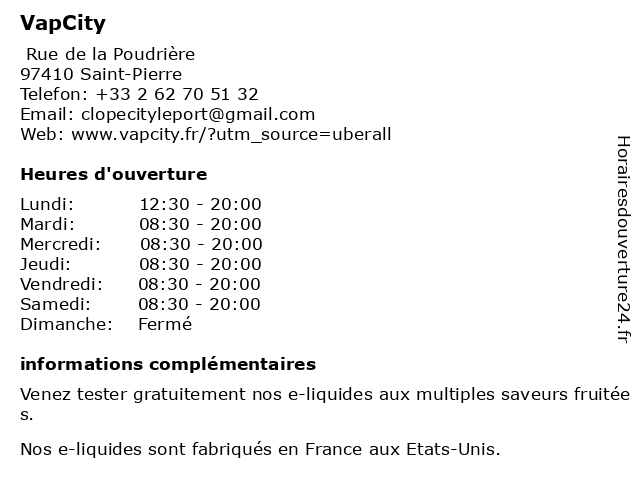 3 VapCity (Distance: 50,51 km) 55 Rue Félix Guyon, 97400 Saint-Denis cigarette, cigarettes, cigaverte, e-liquide, electronique, electroniques, vapcity, vape, vapote, vapoteur |