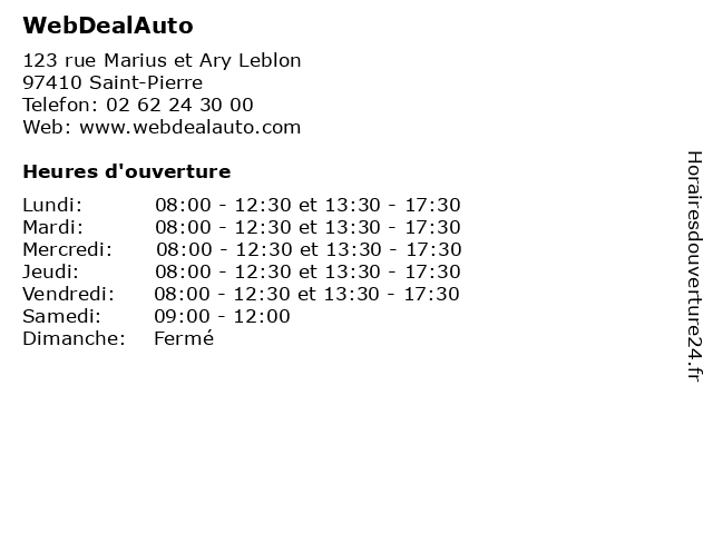 Lundi | 08:00-12:30 et 13:30-17:30 |