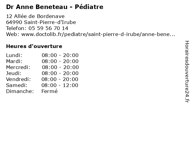 | Lundi | 08:00-20:00 |