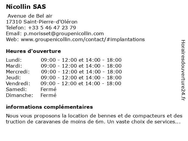 | Mercredi | 09:00-12:00 et 14:00-18:00 |